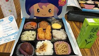 九州各地の素材を使用したおいしいお弁当をたべながら午後の取材の取材計画をたてました。
