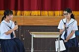 9年生の横山夏海さんと岩切梨乃さんが、「こんな日南になったらいいなぁ~」で『移動式 道の駅』を提案発表しました。