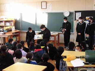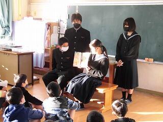 12月7日(火)の朝の時間に、中学生(7年生)が、小学生に絵本の読み聞かせを行いました。