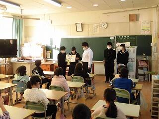 12月7日(火)の朝の時間に、中学生(7年生)が、小学生に絵本の読み聞かせを行いました。