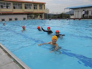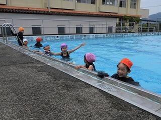 初めて、小学校の大きなプールの水に浸かって、大はしゃぎでした。
