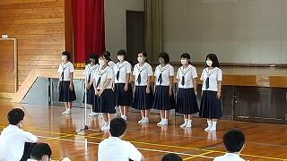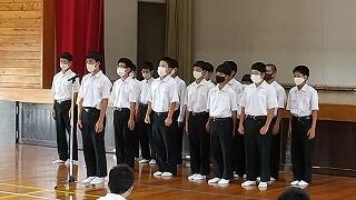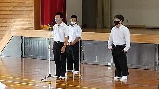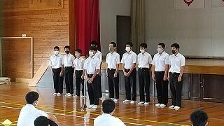 6月12日(土)から始まる、南那珂地区中学校総合体育大会に向けて選手推戴式が行われました。本校部活動はもちろんのこと、社会体育で活動している競技の選手も、大会に向けての決意を発表しました。県大会目指して頑張ってください。