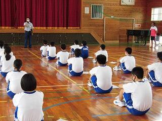 久しぶりに、小学生全員が体育館に集まって、全校朝会を行いました。