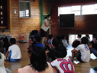 5年生は、明日から宿泊学習です。宿泊学習に向けて、校長先生がこの2日間に身につけて欲しい4つの心構えを5年生に話されました。