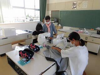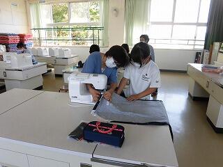 6年生は、家庭科の学習でエプロン製作に取り組んでいます。