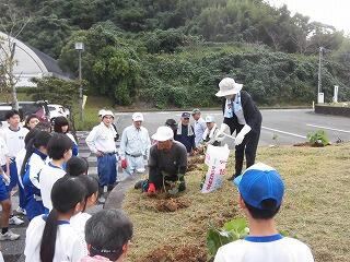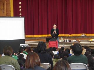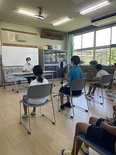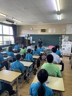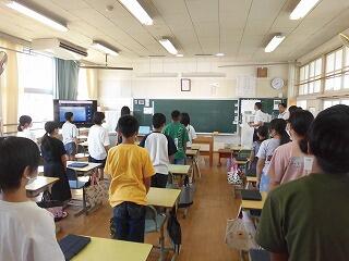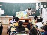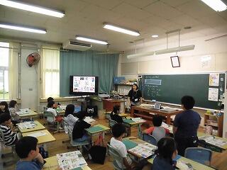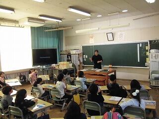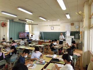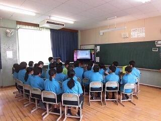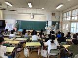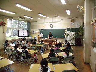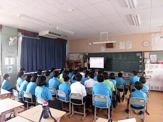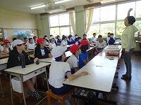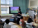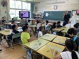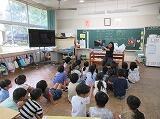 その後、ご自分の体験を含め、アカウミガメの生態について貴重なお話をしてくださいました。1年生は、瞳を輝かせながら話に聞き入って「ウミガメさんは、すごい。」
