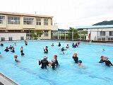 水泳の授業に欠かせない安全確保には、地域コーディネーターのサポート支援を得て、数名のボランティアの方が来てくださっています。ありがたいことです。