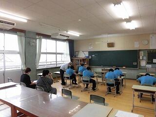 中学校は、それぞれの先生方が各学年を回って、保健面・生活面・学習面についての説明をされました。