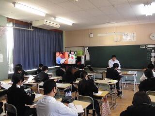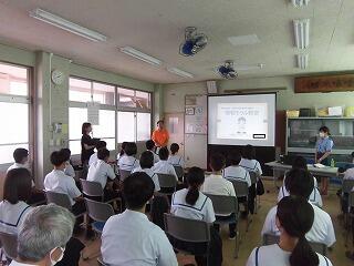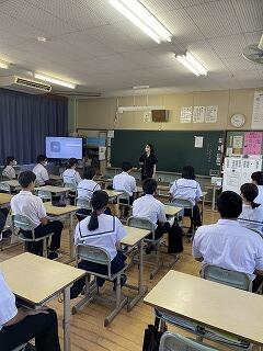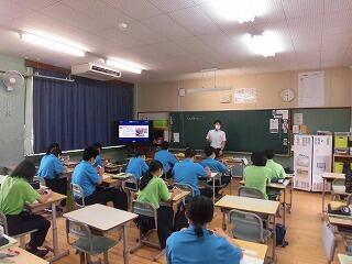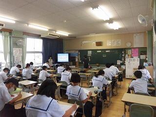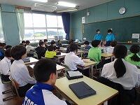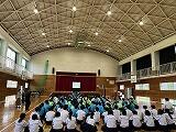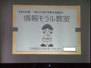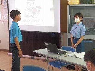 命の大切さを考える集会を行いました。日南警察署より講師の先生をお招きして、情報モラルについて学習をしました。この日は、体育館でお話を聞く予定でしたが、気温も高く熱中症の心配がありましたので、9年生以外は、各学級でのリモートによる学習になりました。