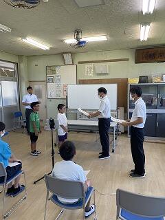 校長先生のお話では、児童生徒のみなさんが1学期行事等をよく頑張っていたを褒めてくださいました。また、夏休みに楽しい体験をたくさんして欲しいことを伝えられました。