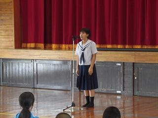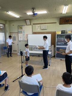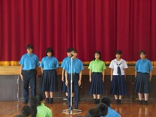7年生は、学級委員長としての2学期の抱負と1学期の反省を述べてくれました。4年生は、学習で成果をあげられたことの喜びと2学期頑張りたいことを発表してくれました。