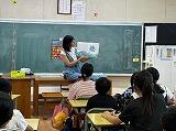 1~6年生までの絵本をたくさん準備して、読み聞かせをしていただきました。GAYAの皆様、2学期もよろしくお願いいたします。画像は、6年生教室で読み聞かせ後の、児童がGAYAの方へ感想を伝え合う様子のものです。