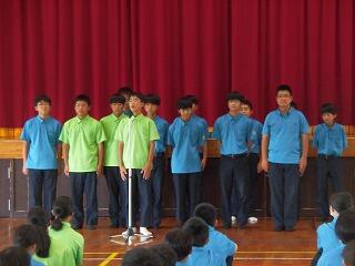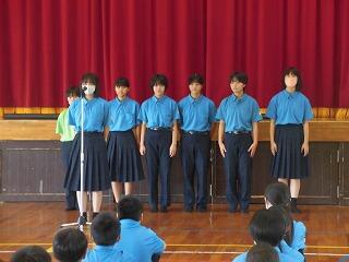 1 卒業生に向けての感謝の気持ちを込めて、全員で「ありがとうの 花」を合唱しました。