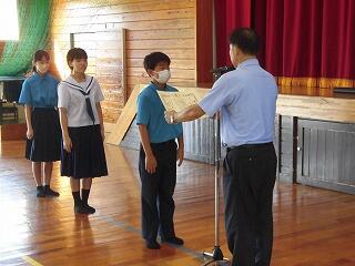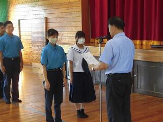 9月26日(木)令和6年度第19回南那珂地区中学校秋季体育大会推戴式及び表彰集会を行いました。秋季大会は9月28日(土)29日(日)に開催されます。県大会への出場を目指し、今まで努力をしてきた成果を発揮してくれることを祈ります。