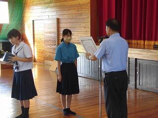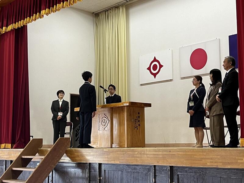 東郷小中学校では、東郷地区青少年育成協議会主催による「立志式」がおこなわれました。下の写真の流れで式は進みました。