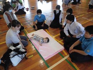 特に2年生では、赤ちゃん人形を使っての授業「おおきくなるということは」を行いました。