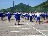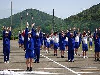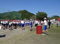 5月2日(金)、今年度初の小中合同運動会練習が行われました。今回は、開会行事と応援の練習です。