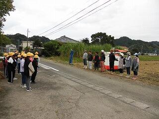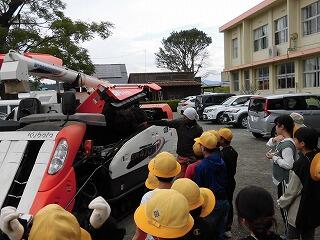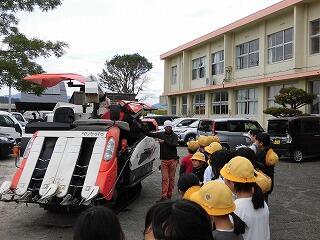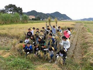 6月に植えたもち米の苗がたくさんの穂を実らせました。10月20日(金)に5年生は、地域の方(JAはまゆう東郷支所壮年・青年・女性部、JAはまゆう東郷支所職員)のご指導、ご協力のもとに稲刈りを行いました。