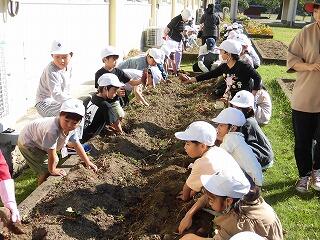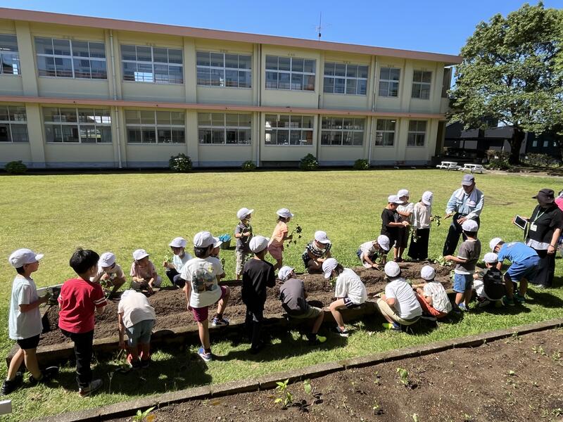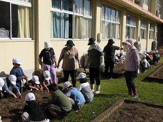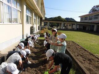 ボランティアの方から、どのように植えるかを教えていただきました。1・2年生は、うれしそうに苗を手にして、植えていました。笑顔がいっぱい広がる活動となりました。地域の支えは、大きくありがたいもの。感謝いたします。