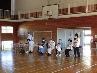 始業式が終了し、中学校では学習面に関するお話し、健康面に関するお話し、生活面に関するお話しが小学校の体育館でありました。