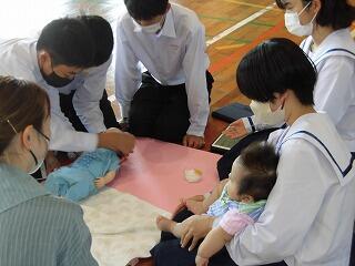 11月2日(木)8年生の性教育の授業がおこなわれました。池田助産院の堀田江理先生を講師にお迎えして「いのち・生命の誕生」をテーマに講話をしていただきました。後半は、実際に赤ちゃんとの触れあいの時間が設けられ、赤ちゃんを抱っこしたり、赤ちゃんのお母さんに質問をしたり、充実した時間となりました。