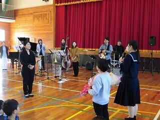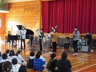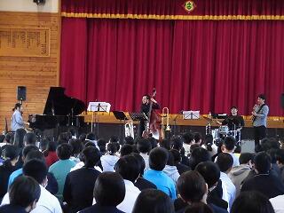 11月13日(月)に、鑑賞教室を行いました。今回は、宮崎を拠点として活動するジャズミュージシャンによって結成されたグループ「宮崎ジャズコネクション」にお越しいただきました。