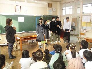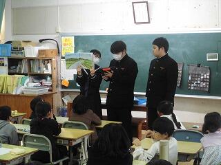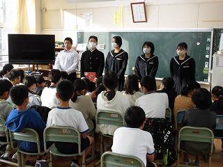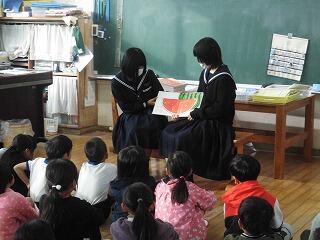 11月16日(木)の朝の時間に、中学生(9年生)による「読み聞かせ」が行われました。1年生から6年生の教室に9年生全員がグループに分かれて、絵本の読み聞かせをしたり読んだ内容に関するクイズを出したりしました。小中一貫校ならではの活動です。