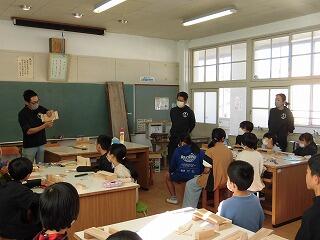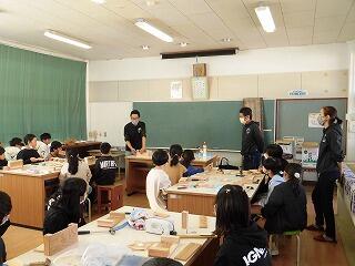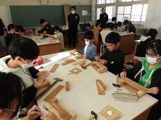 11月22日(水)に、森林環境教育実践事業として「木工教室」を行いました。4年生が、地元の木材である「飫肥杉」を使って、木工作品を作りました。