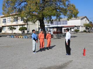 中学生だけですが、消火訓練を各学年2名ずつおこないました。