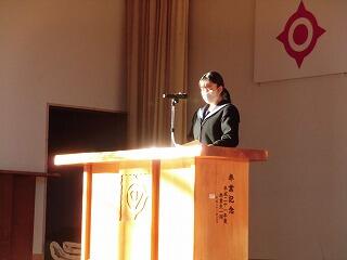 教務主任の先生からは、学習指導・生活指導の先生方の話を振り返られ、学校をよりよくしていくためには、生徒のみなさんが学校の様子に気を配り、改善しなければならない点を、自分たちで見つけて改善して行って欲しいという話をされました。