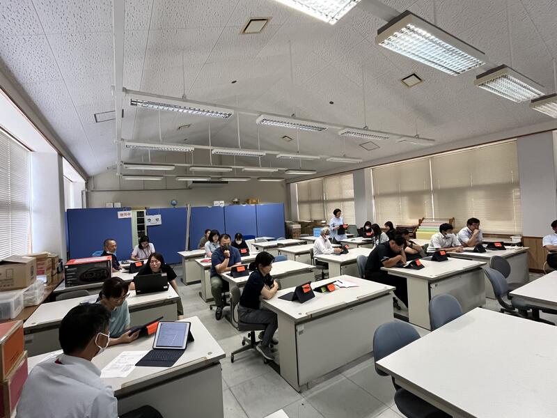 研究主任が中心となり、職員への研究内容の説明にはタブレットを用い、視覚的にも分かりやすく示されました。