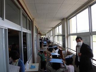 その後の意見交換では、子どもたちのあいさつが良いことや高速道路の開通による交通量の増加が心配されるなどの意見が出ました。授業参観では、タブレットの使用に関心をもたれた様子でした。