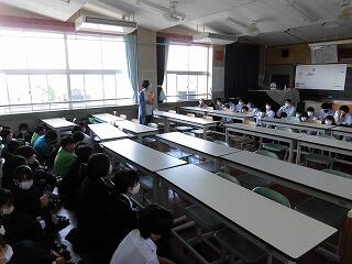 昨年度は、オンラインでの実施でしたが、今年は、ユニクロ日南支店の店長様に来ていただいての学習でした。
