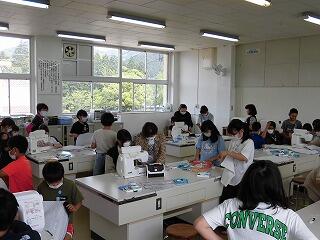 ミシンを使った初めての学習でしたので、7名の学習支援ボランティアの方々にお越しいただいて、作業のサポートを行っていただきました。