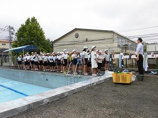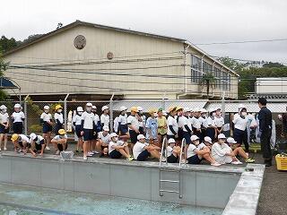 中学校のプール清掃も終わりました。これから行われる水泳の学習を楽しみにしている児童・生徒です。