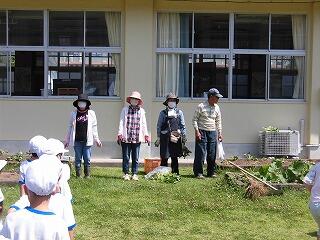 学習支援ボランティア(地域に方々)が、花壇の土作りや畝作りを行ってくださいました。児童はお礼の言葉を述べて、感謝の気持ちを伝えていました。学習支援ボランティアの皆さんのご協力に感謝いたします。ありがとうございました。