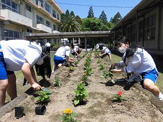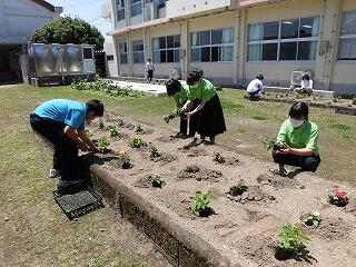 5月14日(水)中学校の生活環境委員会とボランティアの生徒が、学級園に花の苗を植えました。