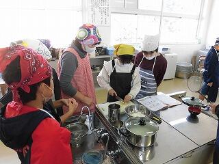 地域の方が、学習支援ボランティアとして参加してくださり、ご飯の炊き方や野菜の切り方等を教えていただきました。おかげで、おいしいご飯、みそ汁、おかずができあがり、児童も喜んでおいしくいただきました。ご支援・ご協力、ありがとうございました。