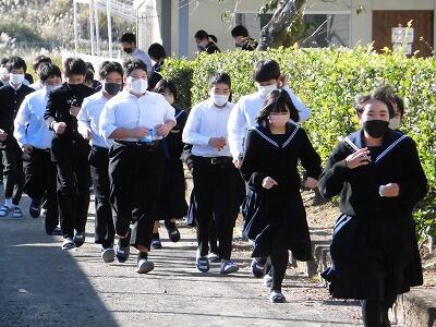 「中学校校舎3階の調理室からの出火」という放送を聞いた全校児童生徒は、小学校の運動場に避難しました。無言で急いで避難することができました。