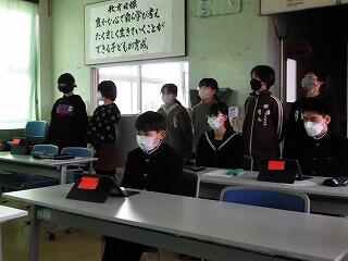3学期が始まりました。始業式は、コロナ感染対策として、小中別に放送で行いました。