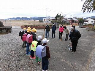 清掃によって小学校正門付近がきれいになり、清掃後は、あいさつ運動をしながら登校して来る児童を見守ってくださります。