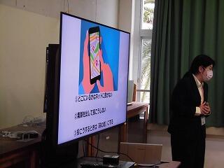2月6日(月)に、レインボープラン授業公開を行いました。アディッシュプラス株式会社のスクールガーディアンの金城先生を講師としてお招きして、「情報モラル」についてとても詳しく教えていただきました。この授業は、日南市内の先生方にも見ていただきました。