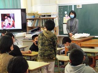 卒業式まで1ヶ月余りとなった6年生は、「おっぱいハウス池田助産院」の堀田先生を招いて、生命の誕生に関する学習を行いました。