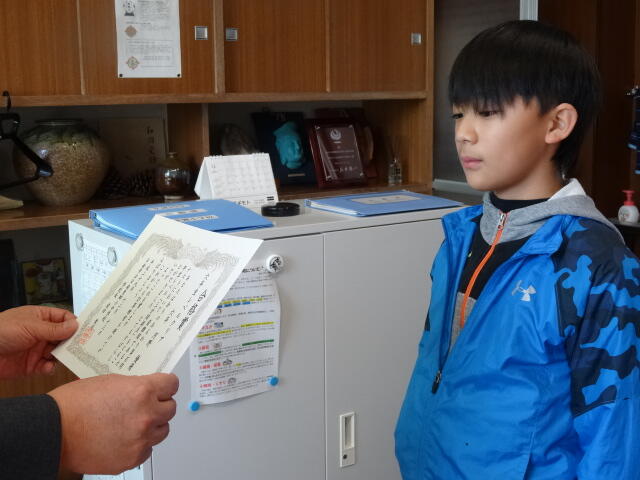 今日は、6年生4名が合格証を手にしました。
