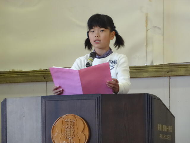 児童生徒代表が、2学期の振り返りを発表しました。二人とも2学期に成長したところや頑張ったことをしっかりと述べることができました。