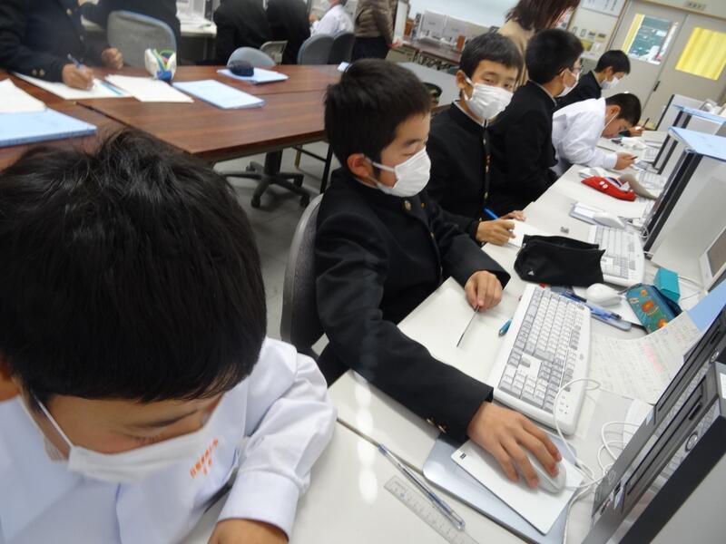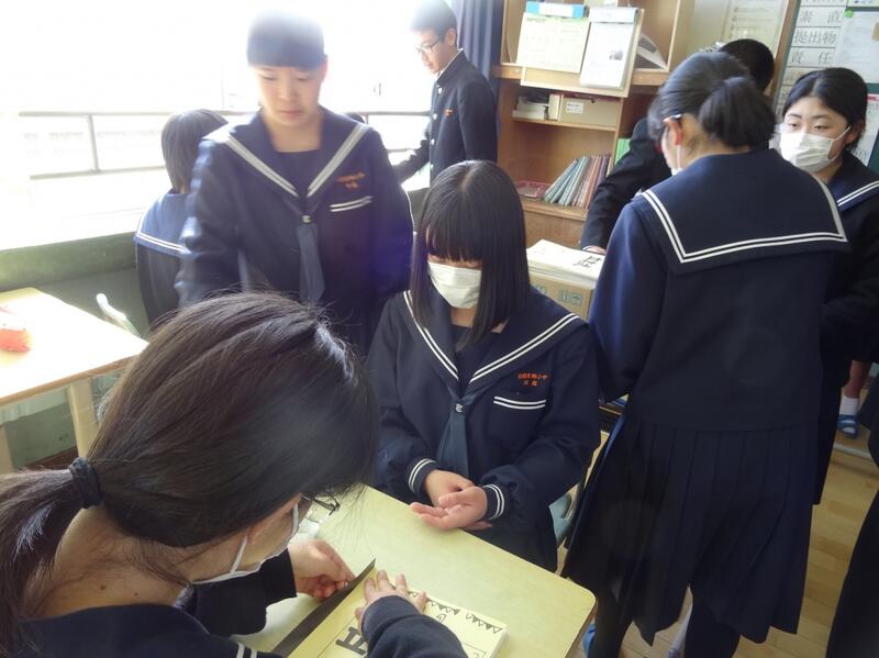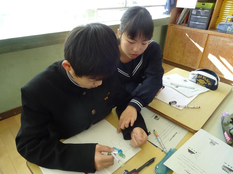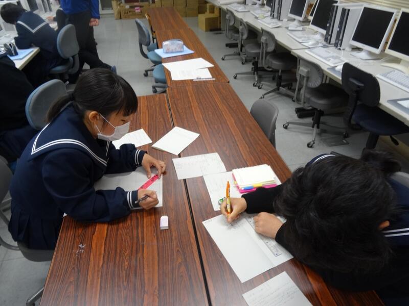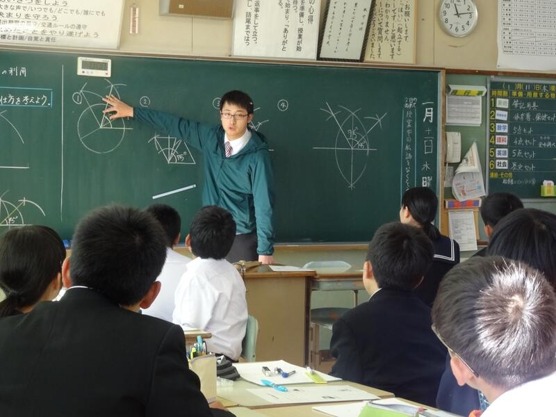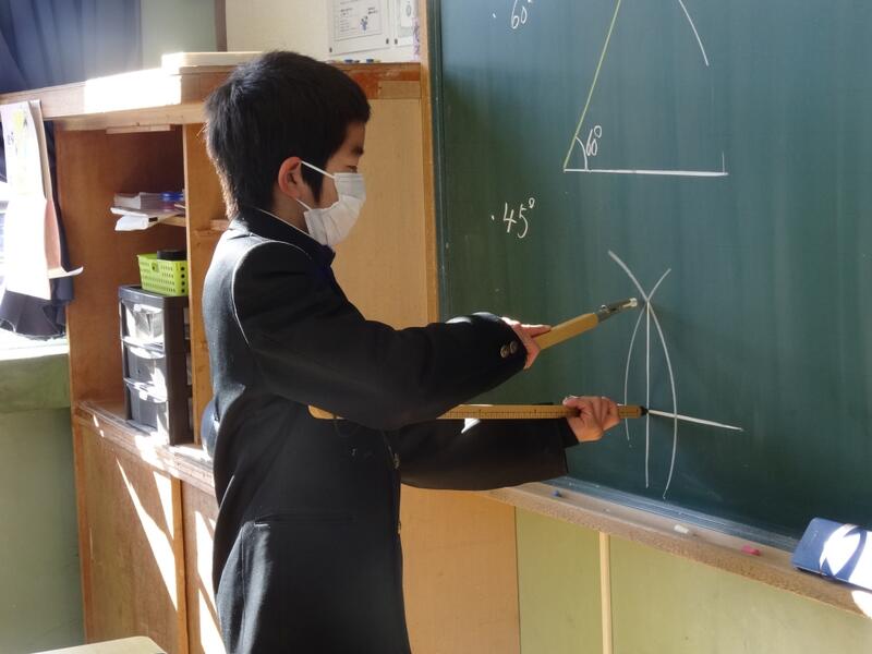 7年生は、数学で作図を学習しています。今日は、学習の様子を小中学校の先生が参観しました。