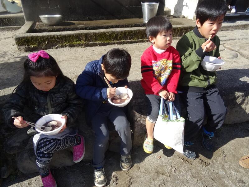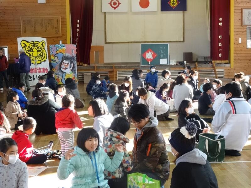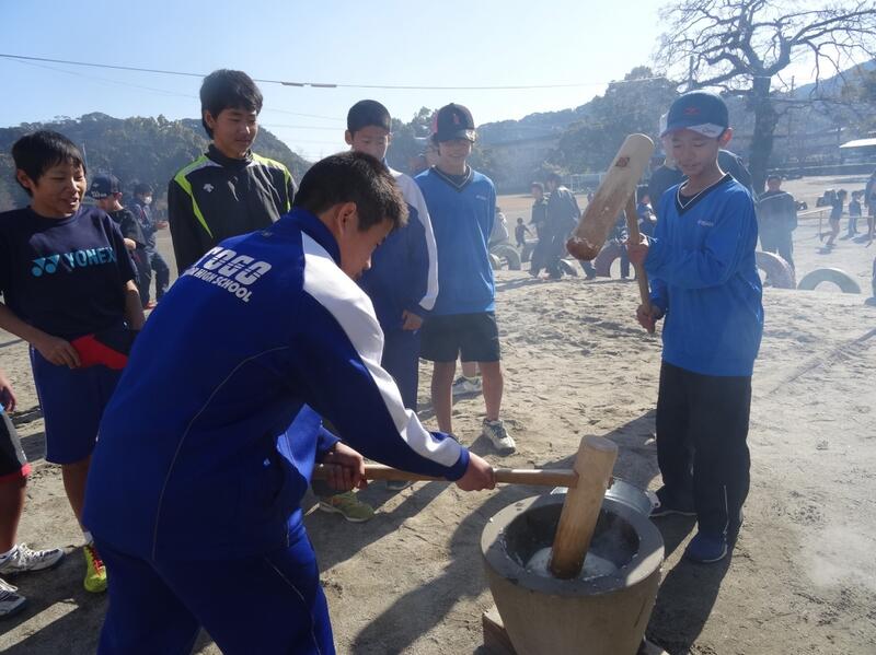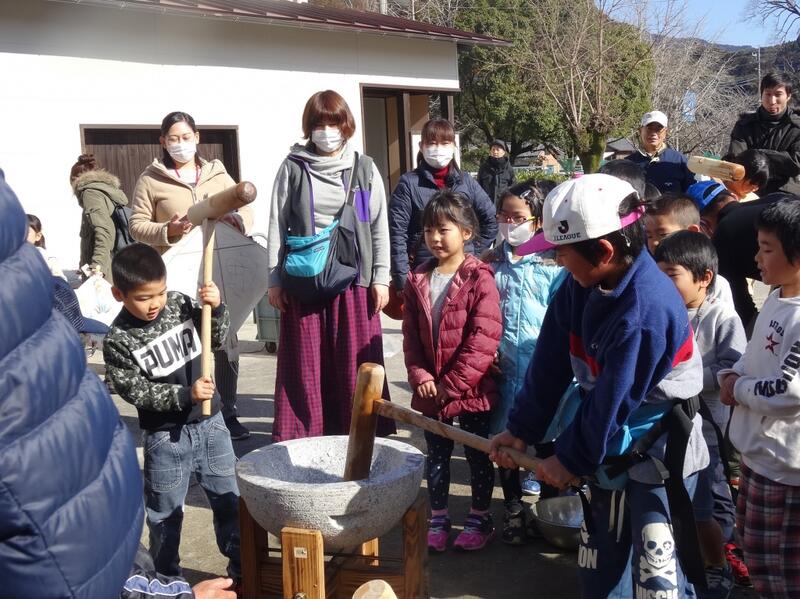 1月6日に、東郷地域協議会による凧作り・凧揚げ大会、そして、青少年育成協議会による餅つき大会とぜんざいのふるまいを行いました。