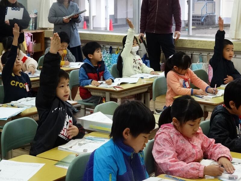 1年1組の国語の授業を、小中学校の職員で参観しました。