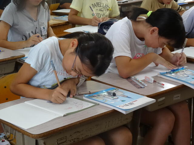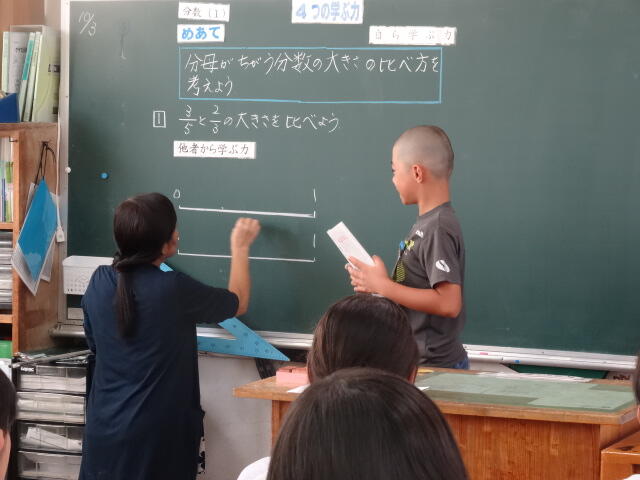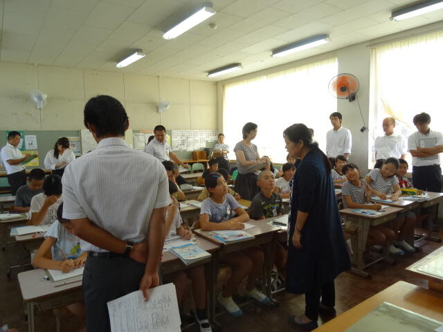 一生懸命に頑張る姿を、小中学校の先生で参観しました。意欲的に学習する5年生に、どの先生も感心していました。