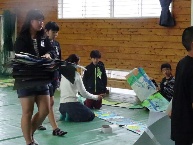 明日はいよいよリハーサルです。今日は、会場作りや作品展示に取り組みました。
